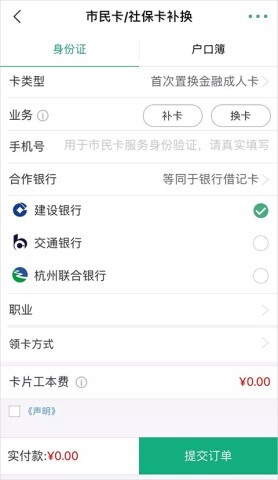 7、若你需选择补换金融卡,记得选择合作银行,邮寄的用户则要填写相关邮寄信息。