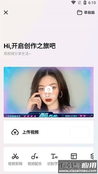 3、在发视频页面可进行创作,支持剪辑、配乐、字幕识别与多种创作模板;