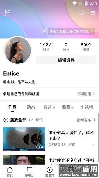 5、个人主页可管理账号信息、查看作品,并支持创建专属粉丝团;