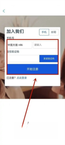 4、填写手机号码及验证码,选择开始注册,简单明了。