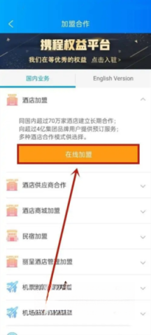 1、主页面导航至加盟合作,开启您的酒店合作之旅。
