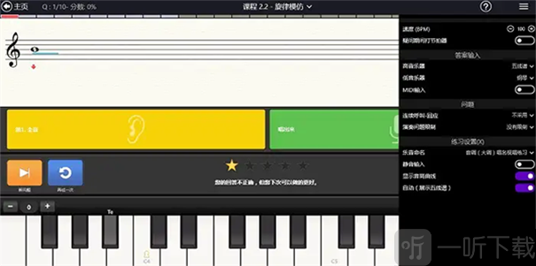 3、输入答案时,可借助EarMaster更换你心仪的低音乐器。点击右上角的菜单栏,在EarMaster右侧任务栏里,点击低音乐器,就能完成更换操作。