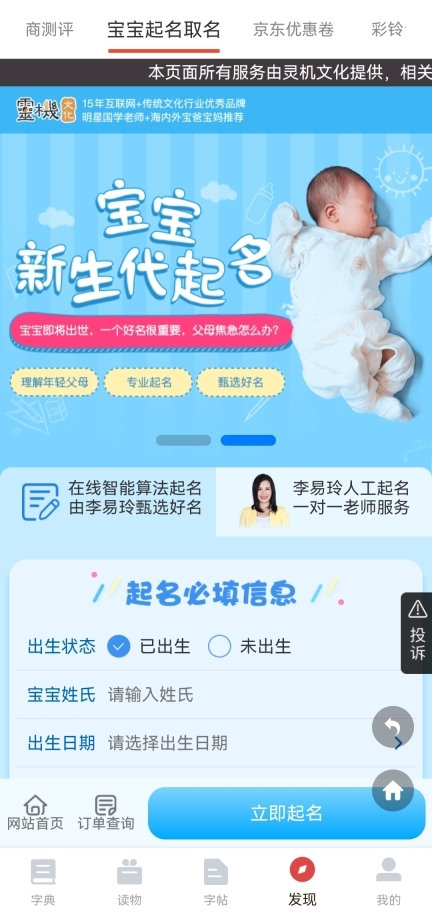 4、当然,当你浏览到这个栏目时,会惊喜地发现其中还设有{宝宝起名取名}这一项,这恰好能帮多数人解决给新生宝宝取名时的困扰。