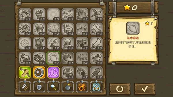 5、天赋:过关后,玩家可以获得星星,相当于天赋点,可以对4种建筑和两个特殊技能进行强化。天赋点可以随时重置