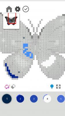 2.像素风格的图片里,每一个像素都配有对应的颜色与数字提示,此外还设有颜料桶之类可一键为多个区域涂色的功能。
