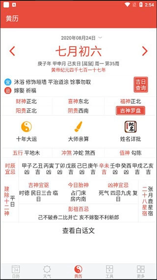 3、在黄历界面,可查看当天的宜与忌