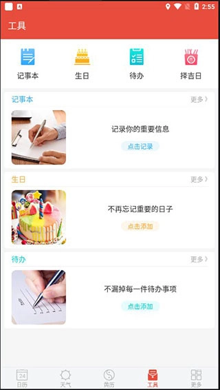 4、在工具界面,可以记录重要日子,也可以择吉日
