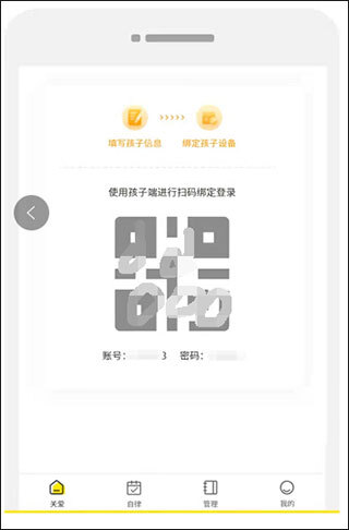 新建完成后,系统会自动生成孩子的绑定码以及对应的账号密码,家长既可以选择扫码登录的方式,也可以通过输入账号密码来登录。