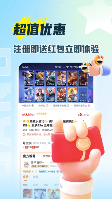 租号帮是一款面向游戏爱好者的正规租号平台,这里汇聚了各类热门游戏的优质账号资源。用户只需借助便捷的搜索与筛选功能,就能快速找到自己心仪的游戏账号。平台始终将用户体验放在重要位置,致力于降低用户的使用门槛,同时也为号主提供稳定且优质的收益渠道。