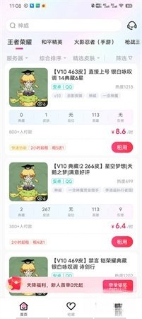 提供优质账号租赁服务,租金仅需0.5元起,不到一元钱,即可体验大神账号的魅力。