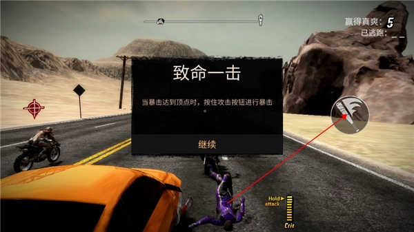 12、踢按钮可以将敌人踢走或者踢入对面的车流中,避免敌人靠近自己。