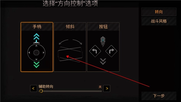 2、接下来玩家需要选择作战控制,玩家根据自己的游戏习惯来进行选择即可,小编这里选择按钮。