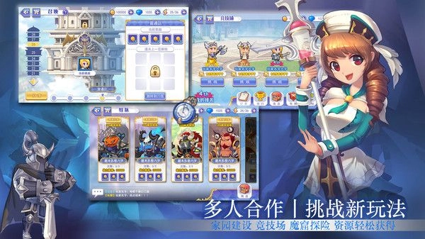 玩家需依据不同战斗场景与敌人特性,对阵容和策略进行合理搭配。游戏内还设有魔窟、狩猎、天降宝藏等多种系统及玩法,可供玩家体验。