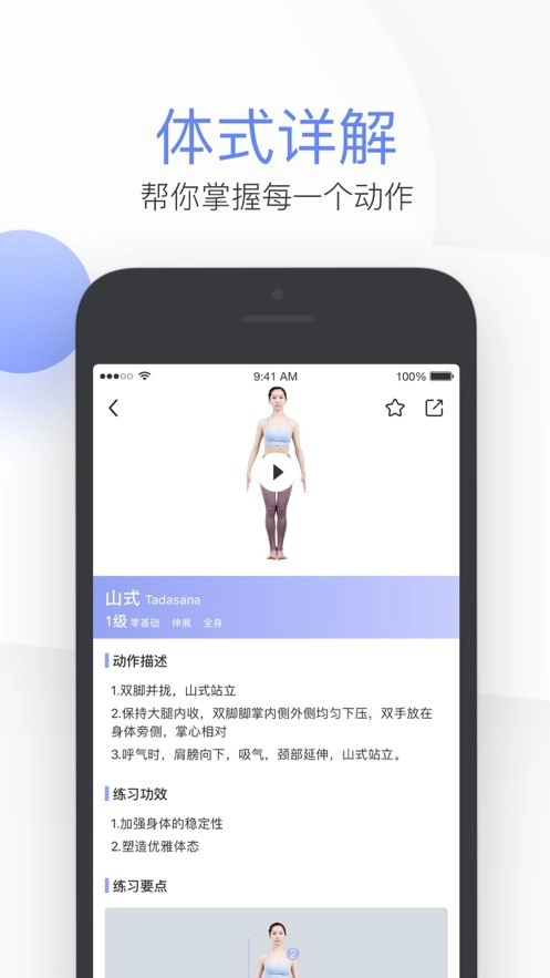 2、全屏显示,瑜伽练习过程年全市语音指导,各种背景音乐的贯穿获取,可轻松帮助用户随时规划;