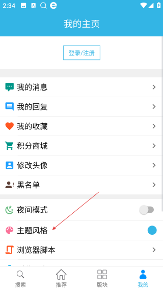 2、在我的主页,找到【主题风格】选项并点击,进入风格选择界面。