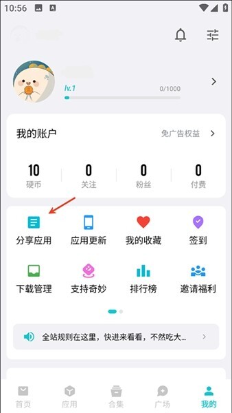 2、绑定完,在"我的"这里选择分享应用。