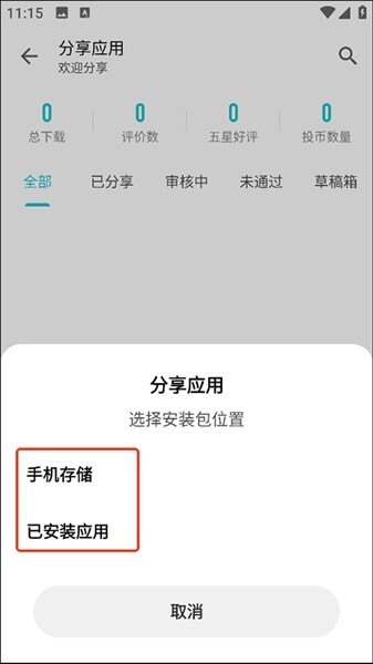 3、然后选择分享应用安装包的位置。