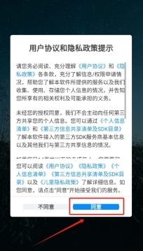 1、打开软件,首先映入眼帘的就是软件协议,点一下同意才能继续下一步操作。