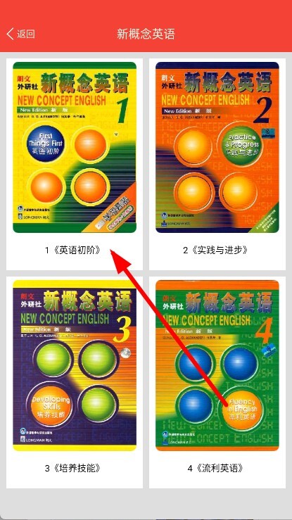 1、打开新概念英语天天学,选择教材,进入课程选择页面。