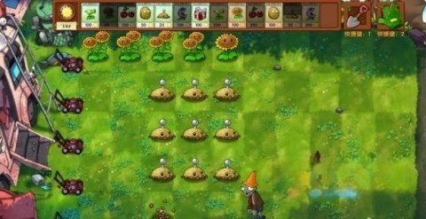 1、开局用樱桃炸弹清除土豆,接着在第一排种满向日葵。一个土豆雷的生效时间足以让你种下多株向日葵,帮助快速积累阳光。