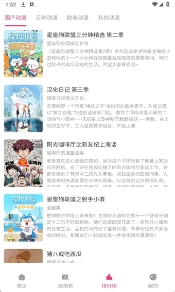 2、排期表展示每日动漫更新情况