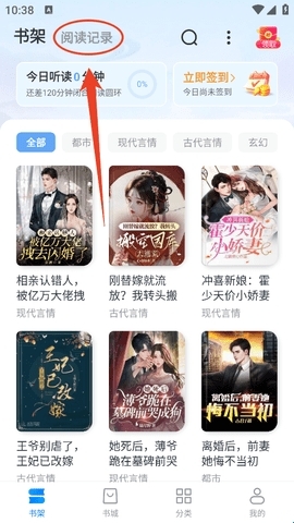 一:在“书架”这里,点击阅读记录就能查看。