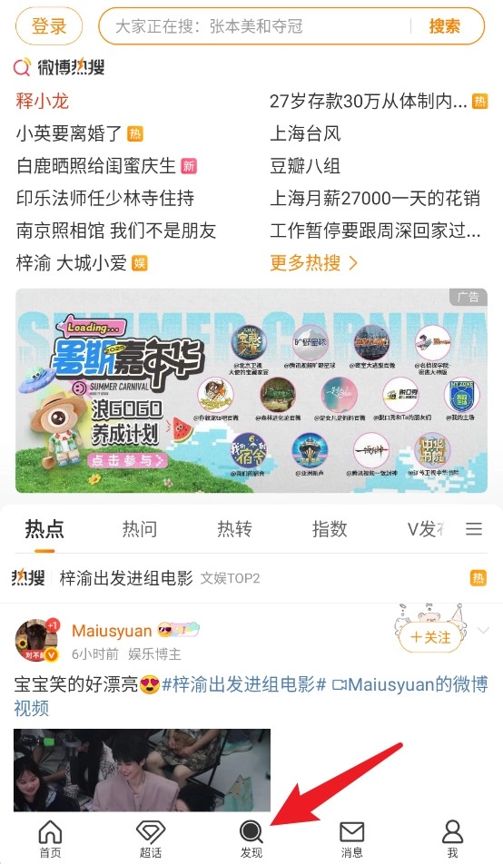 4、在发现页,用户能够浏览实时热搜榜单和系统推荐内容,从而快速了解最新的热点事件以及网友们的关注动态。