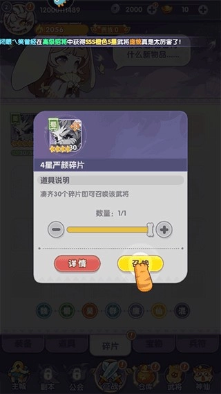 5、接下来就可以使用已获得资源,召唤心仪武将参与战斗啦。