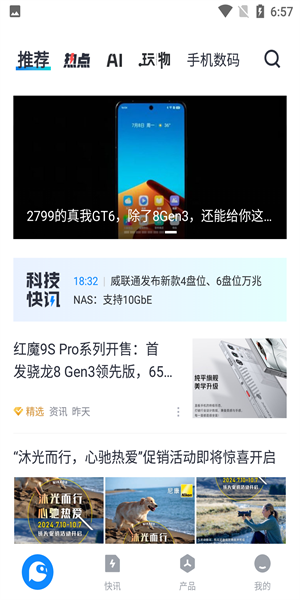 1、打开软件进入主界面可以看见很多热点、推荐、数码内容。
