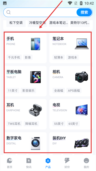 3、产品内可以看见很多数码产品、手机、笔记本、电视、平板应有尽有。