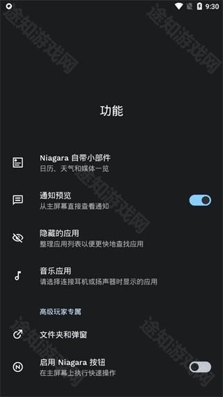 3、之后在niagara的设置界面里,我们还能开展功能方面的配置,像niagara自身附带的一些小部件,以及通知预览之类的功能都可以进行设置;