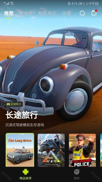 1、启动3A云游应用,进入主界面后,能看到推荐、游戏库、联机专区和收藏这几个频道。目前处于推荐频道,在这里可以浏览到系统推荐的各类游戏。