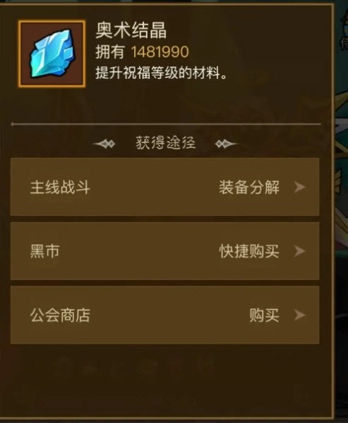 1、奥数结晶:用于升级祝福,祝福效果与你的等级上限和装备品质相关,是相当重要的道具。