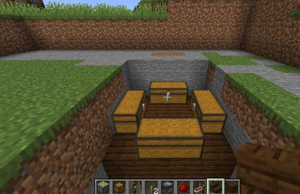 6、最后我们再铺放木板进行隐藏,接着摆好一个按钮,这样我们的地板机关就做好啦!