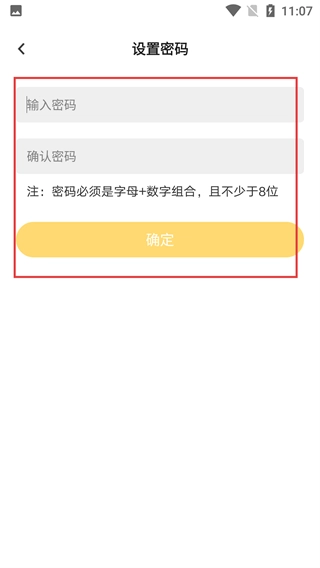4、设置密码时,需遵循【字母与数字组合且长度不低于8位】的规则,分别填写【输入密码】和【确认密码】这两项内容,之后点击【确定】按钮。