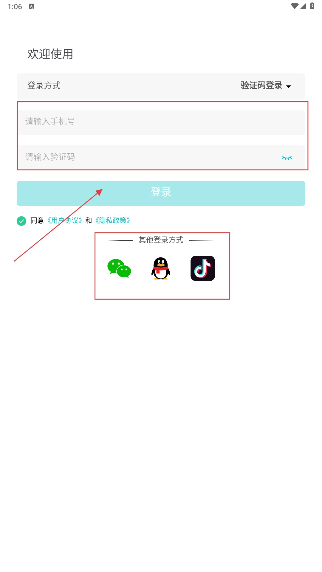 2、进入【请输入手机号】输入框填写号码,获取并输入验证码后登录;也可选择微信、QQ、抖音等其他登录方式,完成授权即可登录。