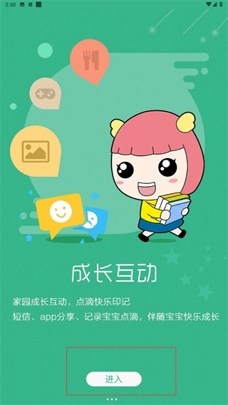 2、在【成长互动】界面,点击【进入】,开启家校互动功能,记录宝宝成长。