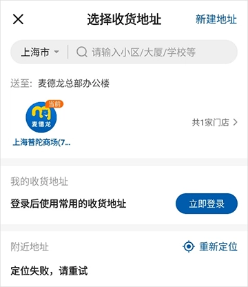 1、打开应用后,点击左上角的麦德龙LOGO或者城市名称