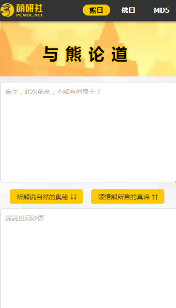 与熊论道手机版是一款十分特别的手机翻译工具,具备文字加密与解密的功能。用户只需把需要加密的文字复制到上方的文本框内,点击“听熊说自然的奥秘”按钮就能完成加密操作。该软件拥有熊曰、佛曰、兽音三个接口,用户可依据个人喜好自由尝试不同的加密风格。