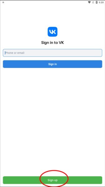 2、打开VK,进入登录界面,点击下方“Sign up”选项