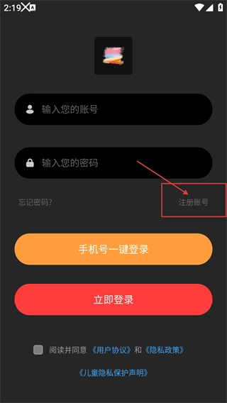 3、在登录界面,若未注册账号,点击【注册账号】按钮,即可进入注册页面,准备填写注册信息。