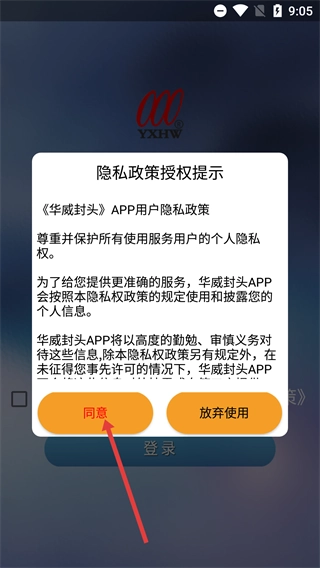 当弹出【华威封头-用户隐私政策】的授权提示时,请仔细了解该政策中关于用户隐私的保护规则,随后点击【同意】按钮。