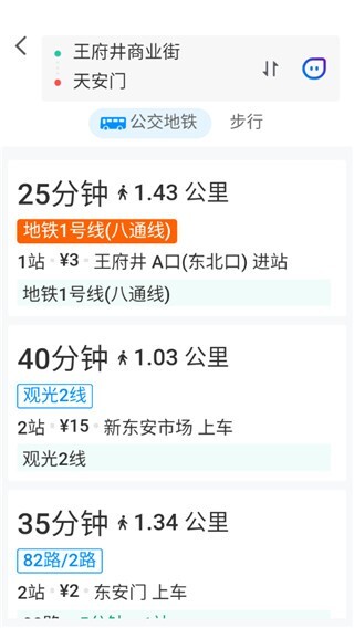 设置好起点和目的地后,系统就会提供详细的出行方式,整个过程界面简洁清爽,没有任何广告。