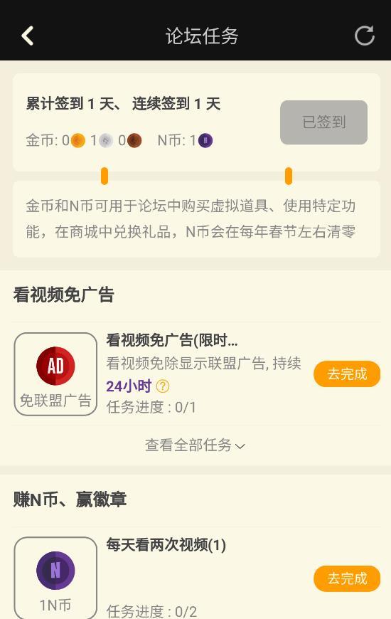 2、进入之后你就可以进行签到和领取各种任务啦!