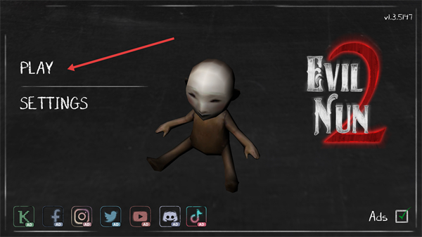 1、点击“PLAY”进入游戏,这是恐怖解谜续作,核心玩法是在场景中探索柜子、抽屉等可交互物品,收集道具来躲避修女、完成逃脱。