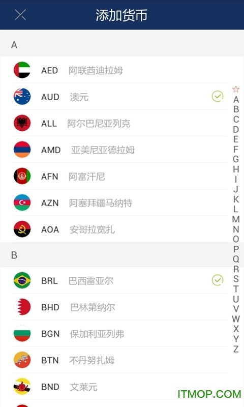 - 即点即加:点击添加列表里的任意一种货币,就能将其添加到换算货币中。