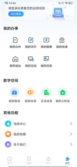 “我的”版块设有个人/企业信息、证照信息、我的办事、数字空间等栏目,可实现办件实时跟踪、服务全过程留痕、电子资料随心存储等智能化数字化功能。