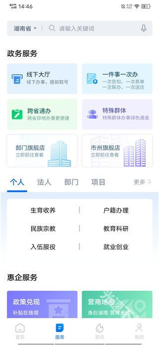 3. 软件涵盖政务服务厅、个人中心、政策信息等功能模块,用户能够依据自身需求进行快速导航与查询。