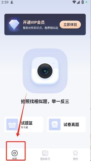 3、返回首页打开“拍照”即可对准题目拍照识别出答案