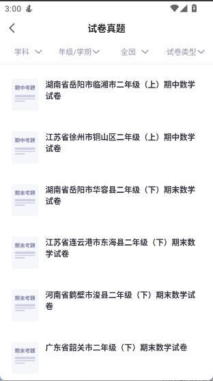 5、“试卷真题”里面可以查询全国各个年级、各学科的考试真题